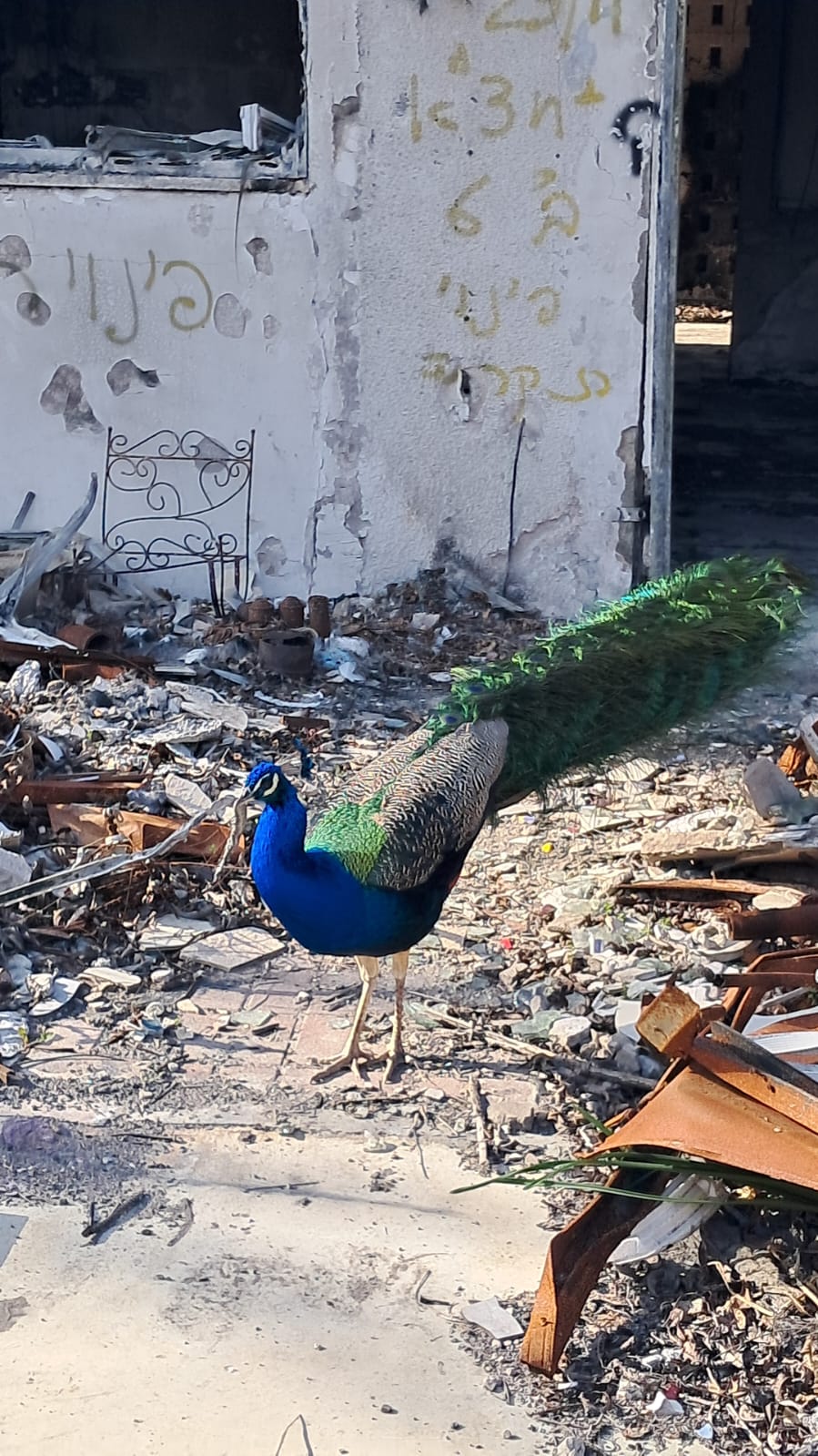 הטווס, שנותר מפינת החי של היישוב, מסתובב עכשיו באופן חופשי בין ההריסות. הוא סימל עבורי באותו רגע איך לצד כל המוות והרוע השטני שהתגלה כאן, נראו גם הטוב והאור. כי "זה לעומת זה עשה האלוהים" — באותו יום שחור משחור נדלקו גם ניצוצות של גבורה אנושית, של מסירות נפש, של אהבת הורים שנלחמו על חיי ילדיהם, של נאמנות בין בני זוג שהגנו זה על זו עד הרגע האחרון.