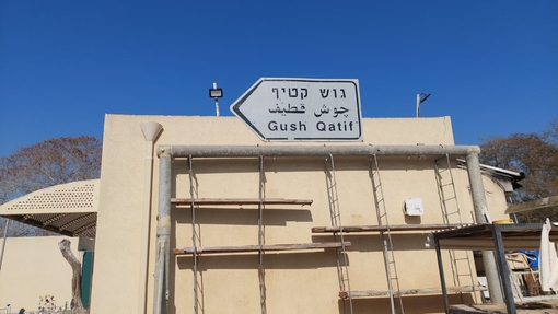 אחרי שגוש קטיף הוחרב עודד הסיר את השלט שהיה בצומת גמה ותלה אותו לראווה על קיר הבית שלו.