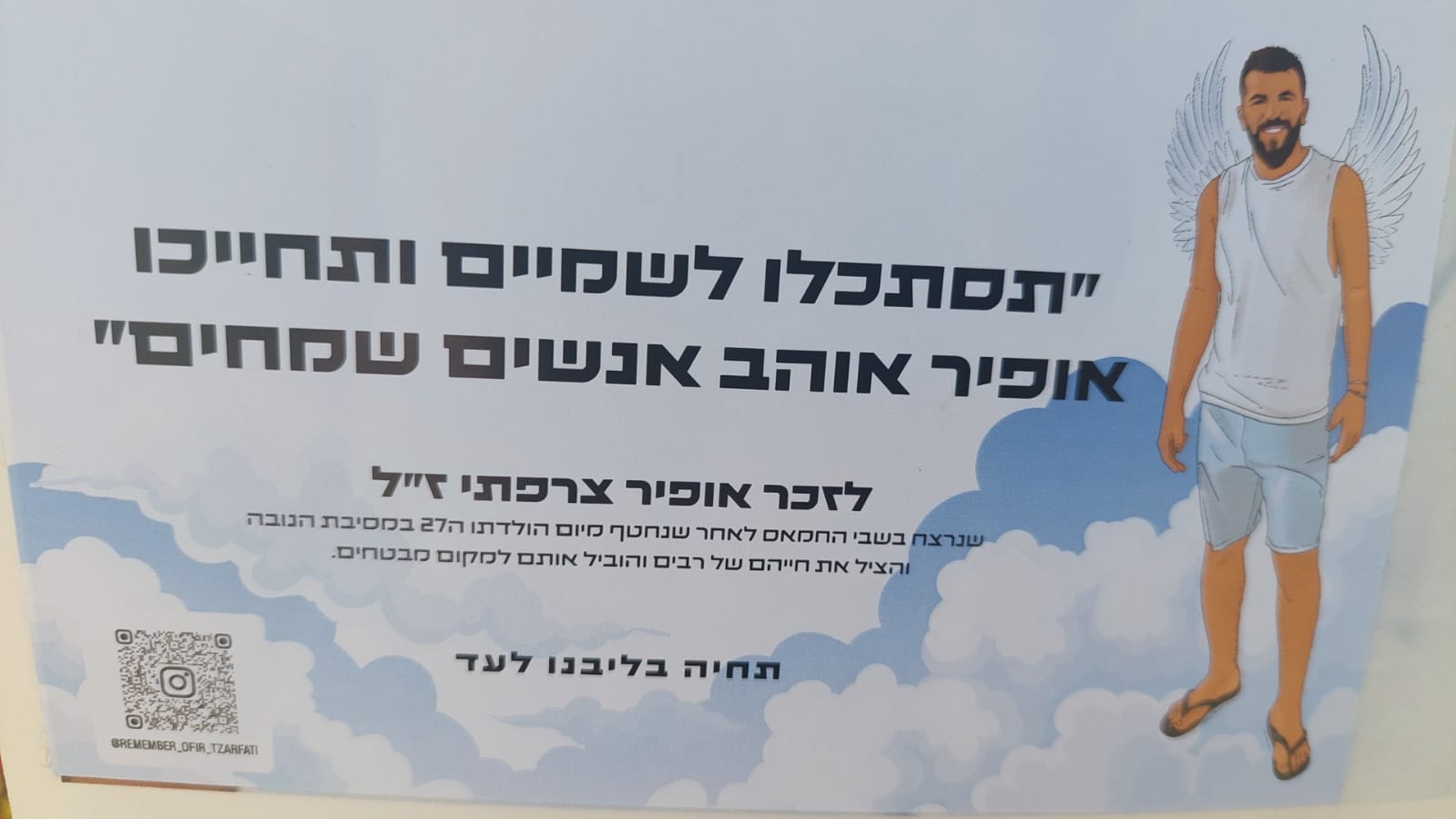 לצד זה משפט שהוצמד לתמונה של אחד הנרצחים - אופיר צרפתי הי"ד