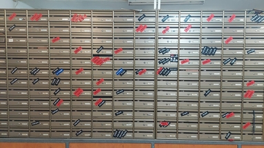 בחדר הסמוך יש קיר שלם ובו תיבות הדואר של הקיבוץ. על חלק רשום 'נרצח' ועל חלק 'חטוף' - פאזל נוראי שמבטא את האסון הגדול שנפל על הקיבוץ השליו